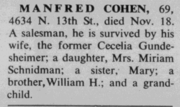 But Claire was also related to me through my Goldschmidt branch since her great-great-grandmother Fanny Schoenthal married Simon Goldschmidt, brother of my three-times great-grandfather Seligmann Goldschmidt. Thus, Claire was my fourth cousin, once removed, on the Goldschmidt line. We share mutual ancestors, Jacob Falcke Goldschmidt and Eva Seligmann, the parents of my three-times great-grandfather Seligmann Goldschmidt and the parents of Claire’s great-great-grandfather Simon Goldschmidt.