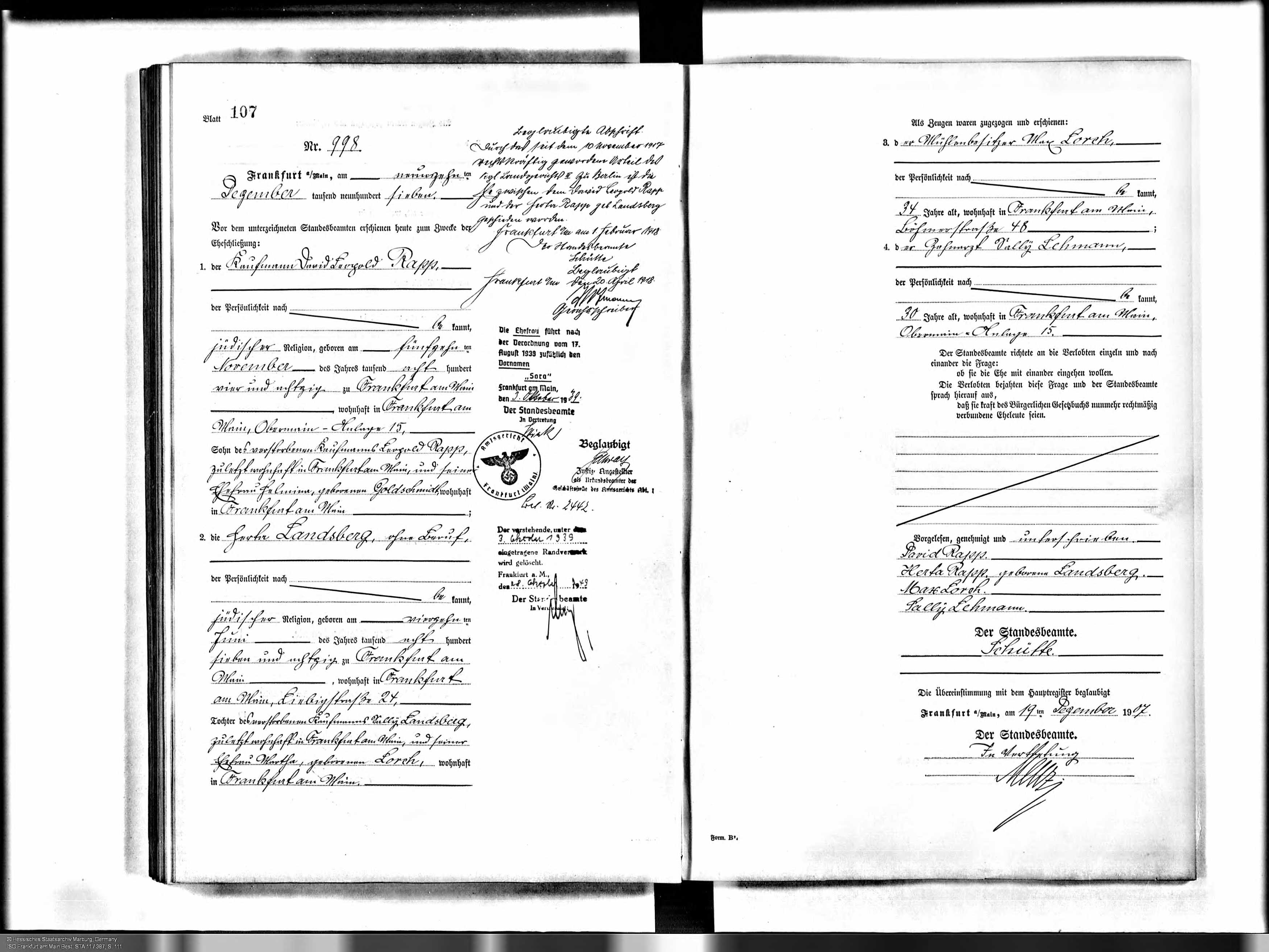 Although I have already written most of the skeleton of the Rapp family story in my earlier post, after reviewing the materials Greg shared and speaking with him, I want to supplement that post because I can now better describe the family’s life in Frankfurt and the journey that finally brought them to the US in 1941.