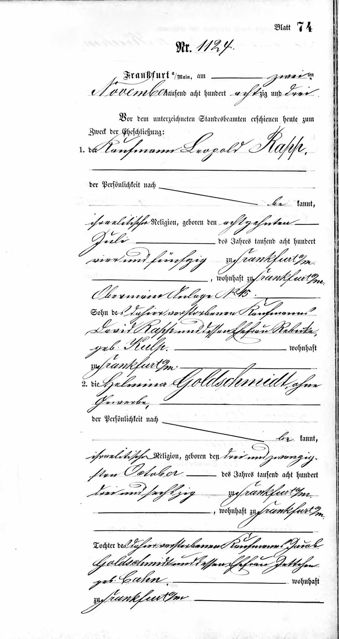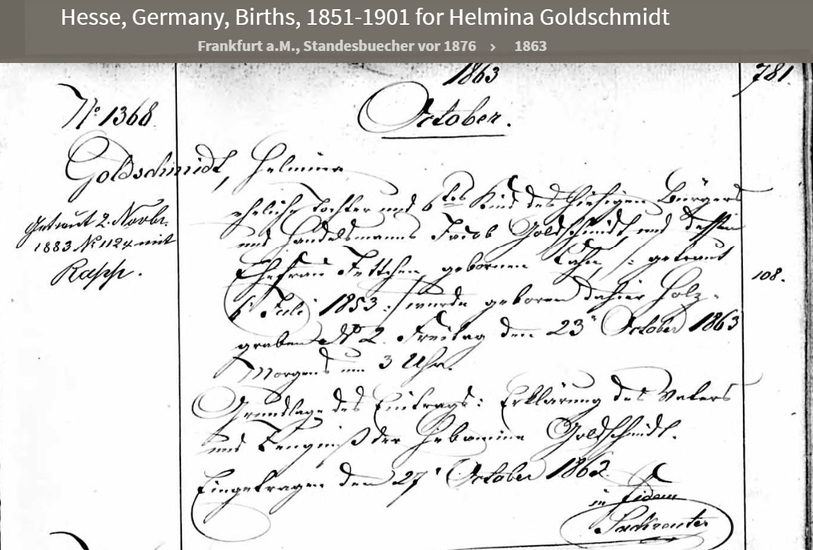 Before I move on to the last child of Meyer Goldschmidt, his son Falk, I have two updates that relate to Meyer’s two other sons, Jacob Meier Goldschmidt and Selig Goldschmidt. Today’s involves descendants of Jacob Meier Goldschmidt.