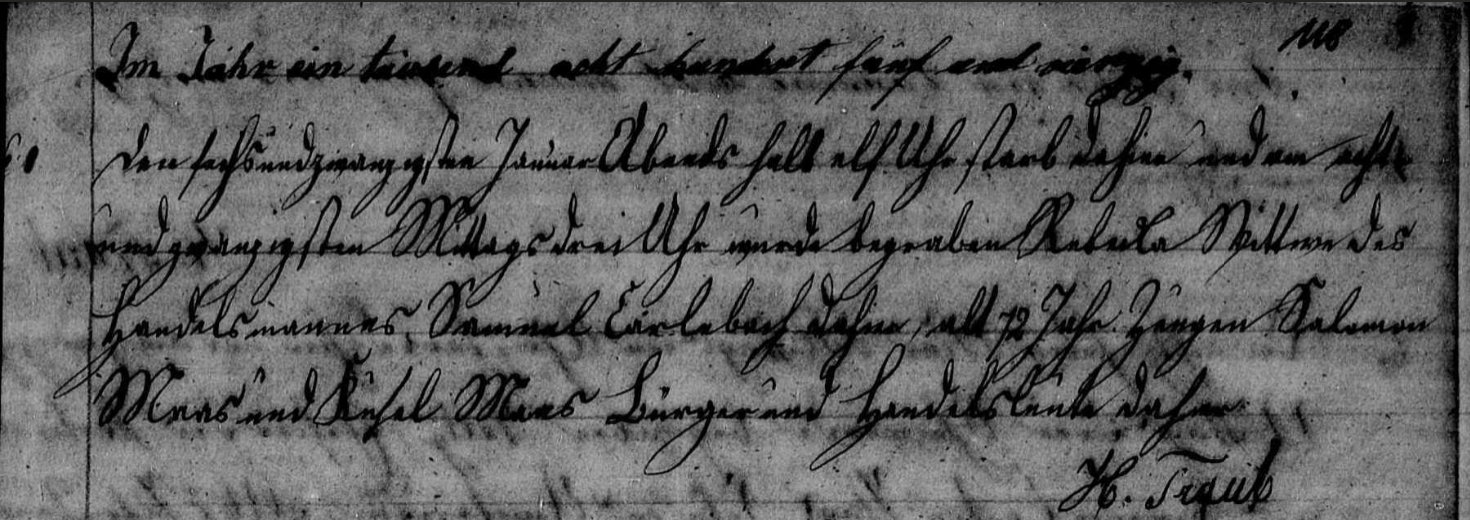 Cathy confirmed that I’d found the right record and also told me that Babetta was the widow of Samuel Carlebach, was 72, and had died on 26 January 1845. So the older Babetta had died just a month and a half after Clara’s birth and six months before Pauline’s birth. Both must have been named in her memory.