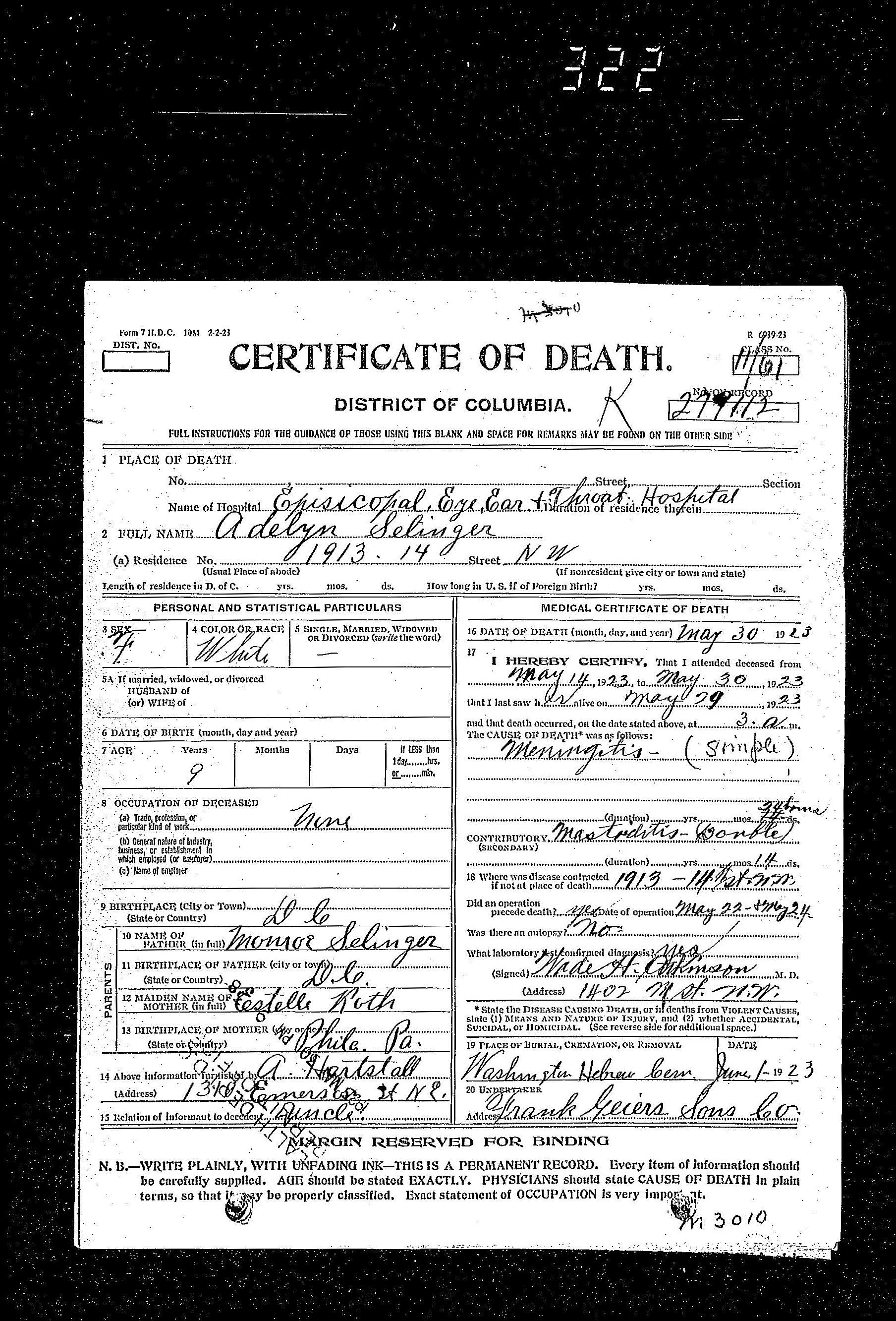 So who was Frederick Selinger, and how did he fit into the family? And who was Fanny Selinger’s mother?