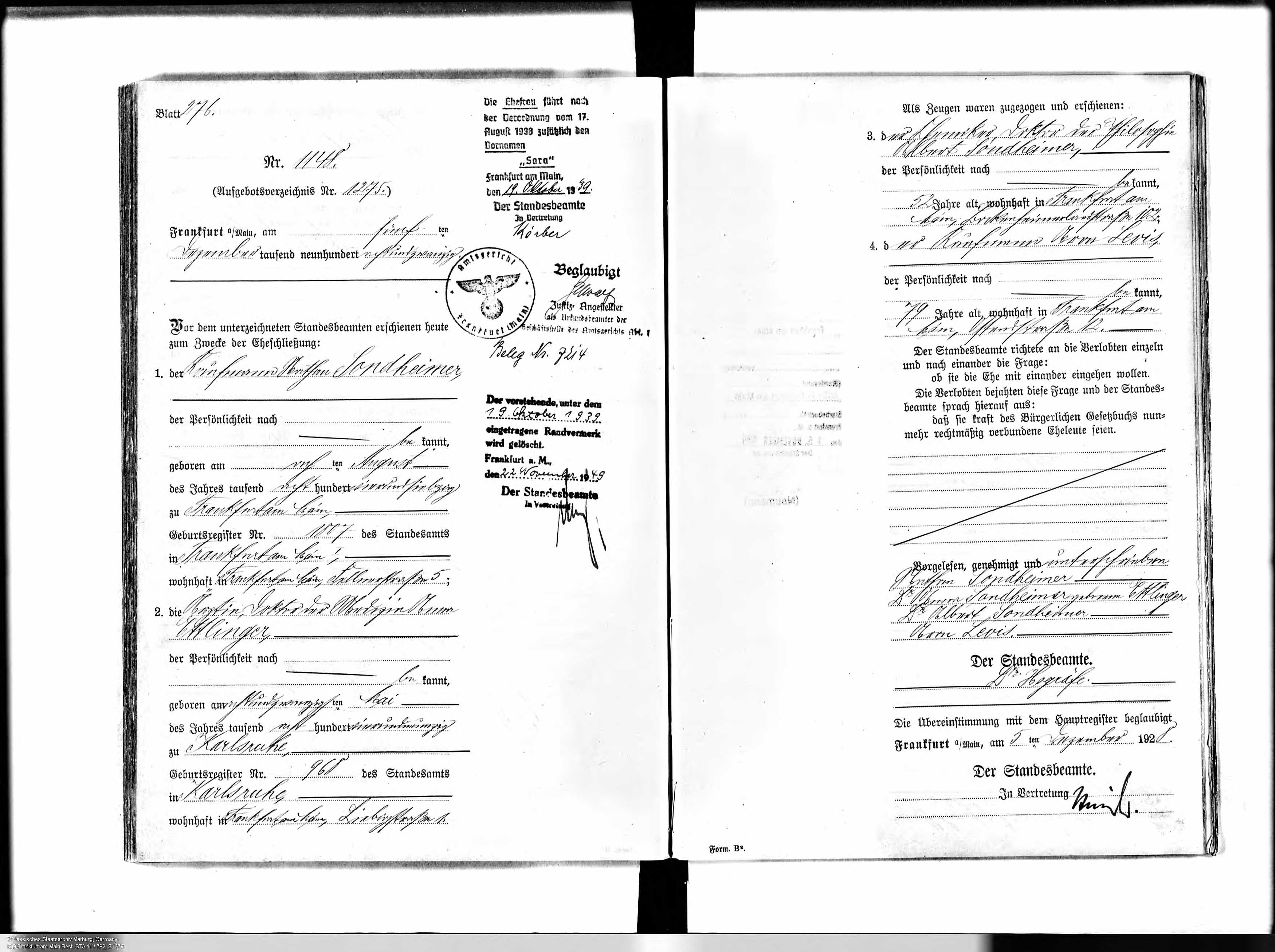 Page Number: 2220, General Register Office; United Kingdom; Volume: 3a; Page: 2220, Ancestry.com. England & Wales, Civil Registration Marriage Index, 1916-2005 ↩ - Conversation with Daniela Sondheimer Klein, December 1, 2020. ↩
