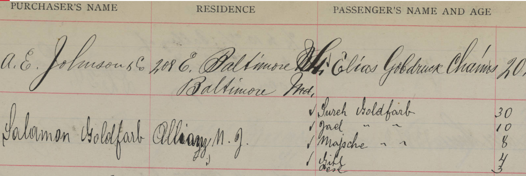 Looking at the 1900 census report for Abraham, by 1900 he and his wife, Minnie Hollender, had been married for 13 years and had had six children, five of whom were still alive. All six children were born in the US. Abraham reported that he had arrived in the US in 1884, three years before marrying Minnie. Their children as of 1900 were Joseph (10), Samuel (7), Gilbert (6), Nephtaly (later Herman) (4), and Leah (2). They were living in Pittsgrove, New Jersey, and Abraham was working as a manufacturer.[2]