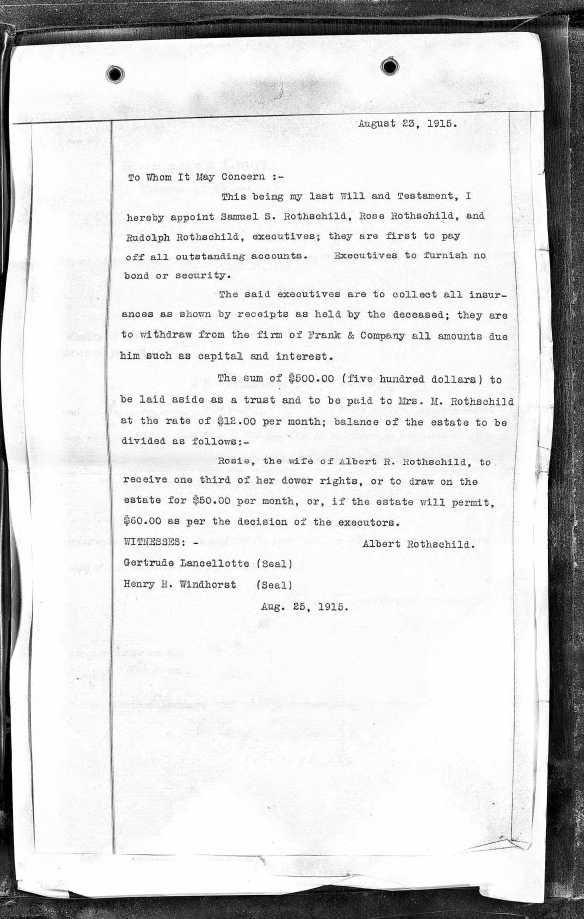Sadly, Malchen Rothschild Rosenblatt died before any of those grandchildren had reached their teenage years. She was 65 when she died on January 11, 1923, in Kassel, Germany.5 She was survived by her husband Daniel, five of her seven children, and her grandchildren.