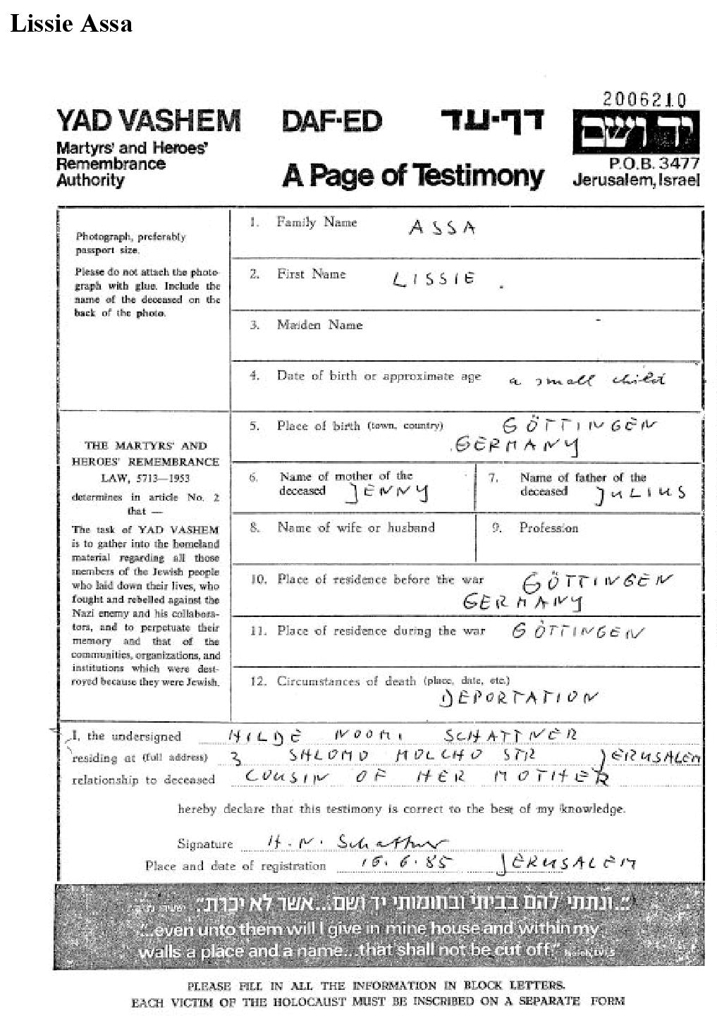 Number 9 is Anna Seligmann Goldmann, the sister of Julius, Moritz, and Franziska and husband of Hugo Goldmann. Anna, Hugo, and their three young children, Ruth, Grete, and Heinz, were all killed in the Holocaust.